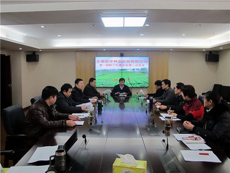 2011年12月31日,省农垦集团副总经理、皖垦种业总经理王占廷主持召开皖垦种业股份有限公司第一届职工代表大会。本届职代会应到职工代表39人、实到36人,7个非职工代表的分公司经理列席会议,公司总部及13个分公司员工分别在合肥主会场和农场分会场视频会议室收看了会议。