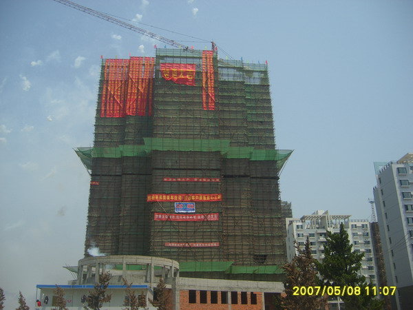 风和日丽,晴空万里,5月8号上午10点58分,“通和佳苑”一期3号楼经过近一年的艰苦努力,顺利实现封顶。这标志着一期住宅工程建设全面进入内外装饰阶段。另据工程部门信息,为使一期的7、8号楼能按期交付使用, 5月7日上午,公司专门组织召开了一次施工现场协调会,就7、8号楼工程进度、施工质量等问题做了具体部署和安排。目前两个项目部正在为确保全部土建工程分别在5月30日和6月10日前具备初验条件,6月30日前交付钥匙而紧张有序地工作。同时,据施工现场了解到的情况,为符合国家防火、防盗需要,7、8号楼的进户门必须具备防火、防盗双重功能,门体设计敦实、耐用,系建设部门指定专用产品,但观感较差,公司上下正在为弥补这一缺陷而努力。(项道宏)