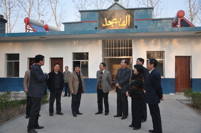 曹承锋一行认真听取了三益回民分场经济社会发展情况的介绍,随后前往市级文物保护单位清真寺进行现场察看,并就落实民族政策和财政资金扶持政策进行研讨并提出了指导性意见。