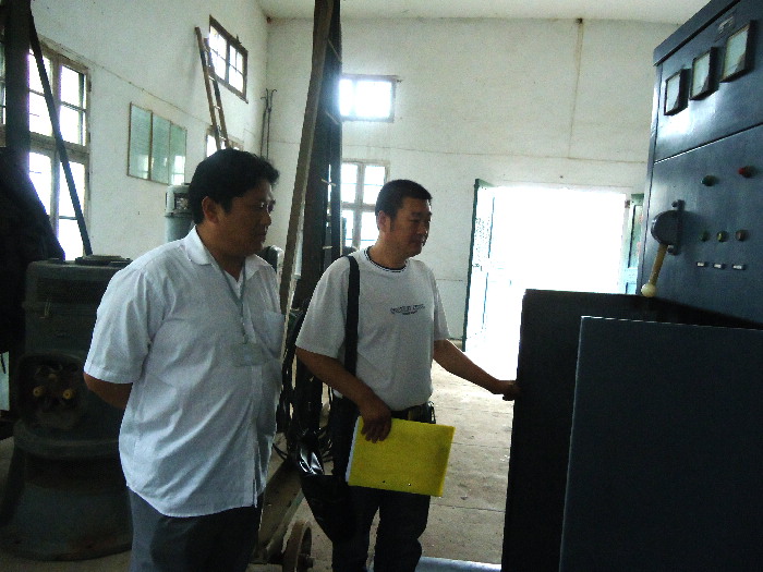 图:6月8日,明光市供电部门派员到苏拐电站检查电器设备运行情况