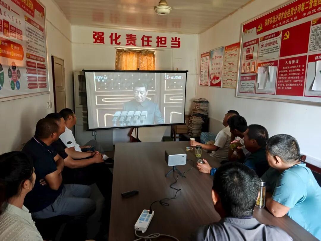 9月3日上午,纪念中国人民抗日战争暨世界反法西斯战争胜利80周年大会在北京天安门广场隆重举行。省农垦集团及基层企业通过各种形式组织广大干部职工认真观看纪念大会直播盛况。