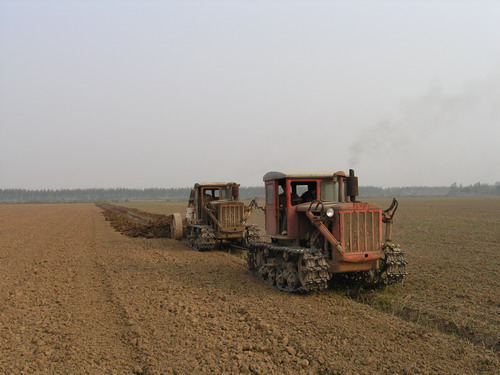 10月15日下午,2台履带式拖拉机正在潘村湖农场一分场田间疏浚条田沟渠。眼下正是秋耕时节,该场在狠抓耕整地作业质量的同时,组织机械和人力修复水毁工程,疏浚干沟支渠,为秋季农业生产实现 “遇涝能排,逢旱能灌”提供了保障。(杨登宏)