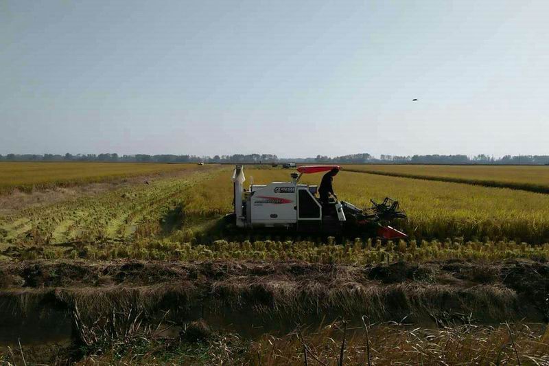 潘村湖农场:旱改水稻开镰收割