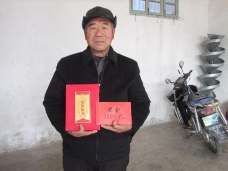 “想不到我自己种地赚了钱,场里还给我奖金鼓励”,龙亢农场副场长程希文亲手将3000元奖金和荣誉证书送到先进科技示范户、农场职工丁长玉手中时,他握住程场长的手,激动的说。