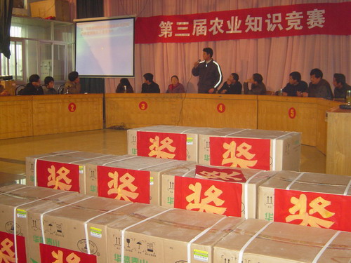 为了宣传和普及农业科技知识,引导职工加强专业理论知识学习和应用,进一步提高科学种田的整体水平,促进农场粮食产量再上新台阶,3月18日下午,大圹圩农场工会和农技推广服务中心在场部礼堂举办了“第三届农业知识竞赛”活动。农业单位管理人员、2007年度粮食生产高产户及部分农业职工100多人参加了活动。场领导及相关专业技术人员担当本次竞赛活动的评委。