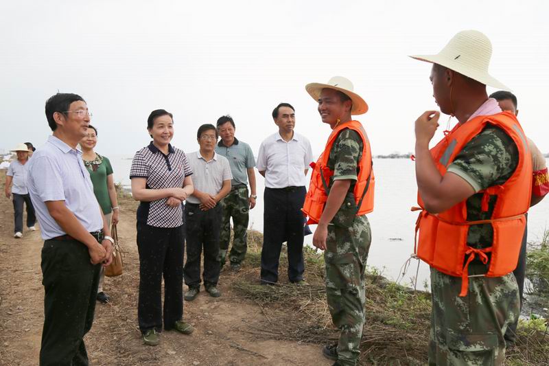 7月14日,省总工会副主席李素萍率队慰问华阳河农场防汛救灾干群,代表省总工会向奋战在防汛一线的广大干部职工表示问候,强调要把职工群众转移后的生产生活安排好,保证困难职工有饭吃、有衣穿、有安全住处。李素萍还慰问了自家被洪水淹没仍坚守防汛一线的两户职工家庭,看望了抗洪抢险的农场干部职工和武警部队官兵。