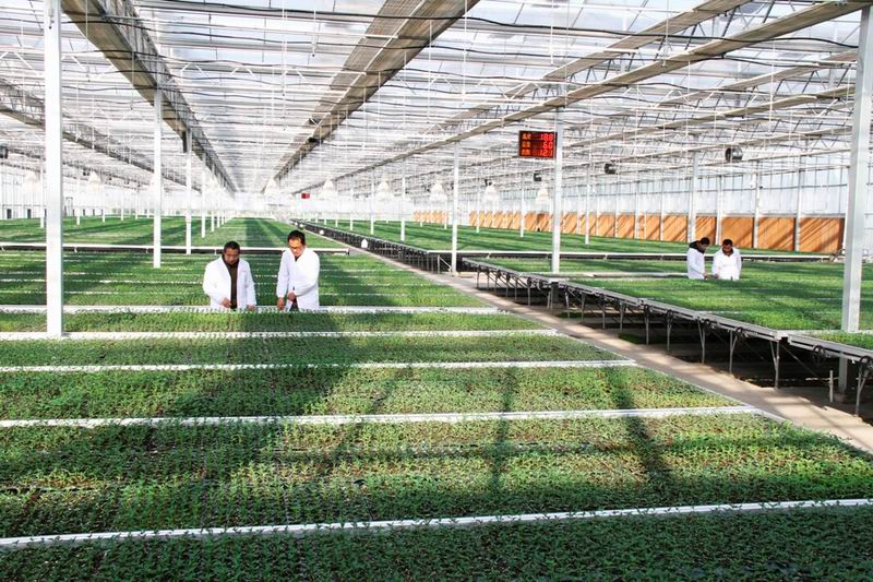 安徽农垦龙亢农场应用农业物联网技术,建设了5000平方米智能温室大棚,内设4500平方米可移动苗床,用于培育特种瓜果蔬菜苗,每年可提供果蔬苗600万株。图为农技人员在为幼苗做体检。(农民日报 201631508版,李峰摄)