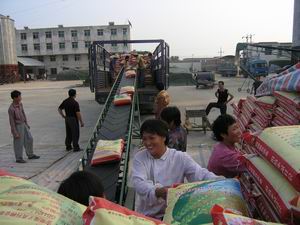 当前正是小麦种子销售旺季,潘村湖农场种子公司全 力以赴狠抓种子销售工作.今年生产加工的2500万斤 优质小麦良种已基本销售完毕,目前正抓紧调运.图 为职工正在装运种子的情景.(杨登宏摄)