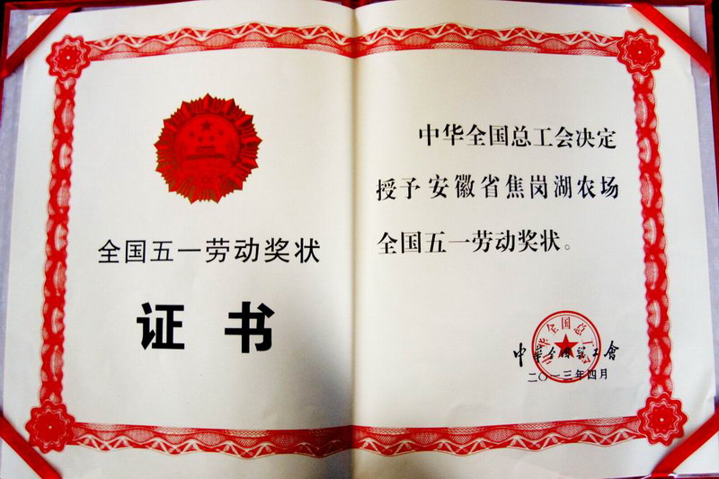 焦岗湖农场:荣获“全国五一劳动奖状”