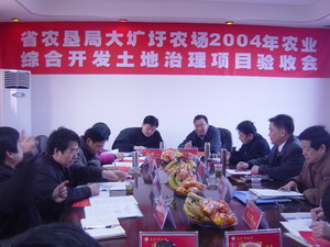 在18日上午召开汇报总结会上,农场场长徐成银向 各位领导和验收组专家致了欢迎词。集团公司李卓 民副总经理、姚礼发处长简要介绍了农业综合开发 项目在农垦企业实施情况以及这项利民、德政工程 在提高农业综合生产能力、实现企业增效职工增 收、促进农垦企业安徽农垦集团方面所发挥的重要作 用;农场徐成银场长及部门具体负责同志介绍了 2003年一般多种经营项目、2004土地治理项目实施 和自检自验情况,以及项目实施后给农场带来的巨 大变化和显著效益。