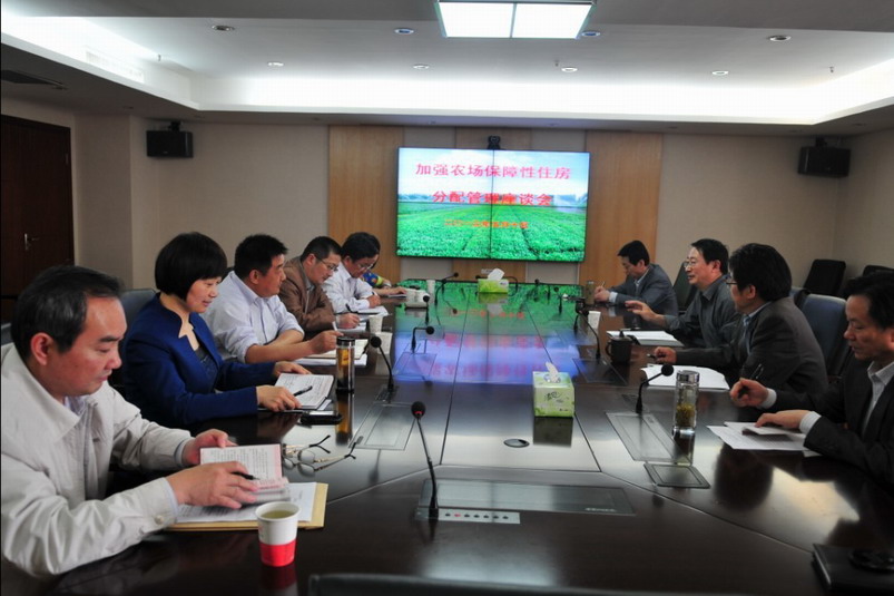 为加强垦区保障房分配管理工作,近日,安徽农垦集团召开加强农场保障性住房分配管理座谈会,传达了省政府办公厅关于加强保障性住房分配与管理工作的通知精神,通报了垦区1-4月份信访维稳工作情况,龙亢、淮南、水家湖、方邱湖、敬亭山、十字铺等场负责同志交流了的保障房分配管理工作开展情况。